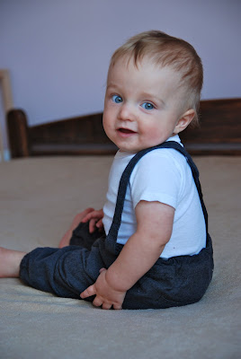 Zębów w dalszym ciągu 2- chociaż widać już białą kreseczkę- górna jedynka!, ile kilo nie wiem- stawiam, że około 9-10 :) klocek jeden!, ulubione zajęcie: buszowanie po zmywarce, wymachiwanie pilotami, łyżkami, cedzakami (dostaje cedzak kiedy jest mega marudą i nic nie pomaga-oprócz cedzaka właśnie), wspinanie- szeroko pojęte :), walenie rączkami w klawiaturę komputera. Z nowych umiejętności- piski, krzyki na różnych częstotliwościach :)
